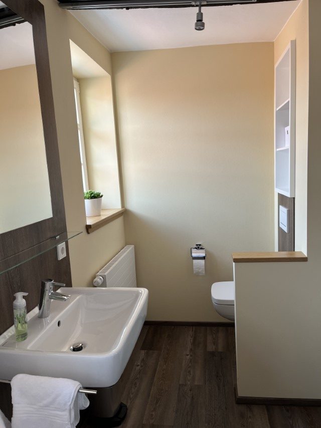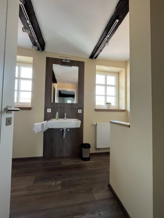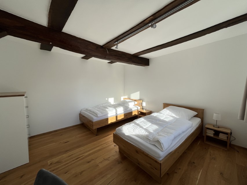 Diese gemütliche eingerichtete Ferienwohnung befindet sich im OG eines Fachwerkhauses auf dem Gelände der Schreinerei in Wabern-Niedermöllrich. Die haustierfreie Ferienwohnung ist neu und hochwertig eingerichtet. Die Wohnküche mit großem Kühlschrank, Induktionskochfeld und Steinarbeitsplatte, Esstisch mit 4 Stühlen, 3er und 2er Couch. Das lichtdurchflutete Badezimmer ist mit großer Dusche, Waschbecken, WC und Schrank zum Verstauen ausgestattet. Im Schlafzimmer mit Doppelbett und Schrank hat man einen wunderschönen Ausblick auf die Eder. Im zweiten Schlafzimmer mit zwei Einzelbetten steht zusätzlich noch ein Schreibtisch. Der möblierte Balkon lädt zu einem Glas Wein in der Abendsonne ein. Gut ausgebaute Fahrradwege und schöne Wanderwege direkt vor der Haustür. Handtücher und Bettwäsche werden im Apartment gestellt.